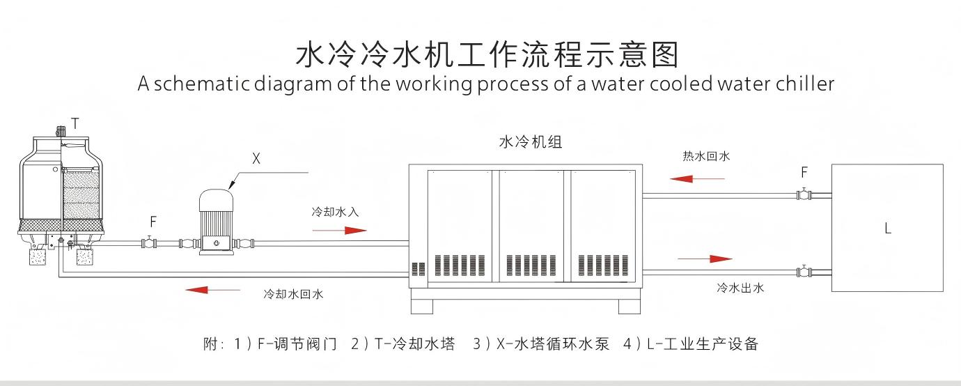 3、水冷系列需要配置冷却水塔及冷却水泵,冷水机放置在室内,噪音比较低,制冷效果更好。水冷冷水机安装好以后不能移动,应用于通风散热不是很好的环境;