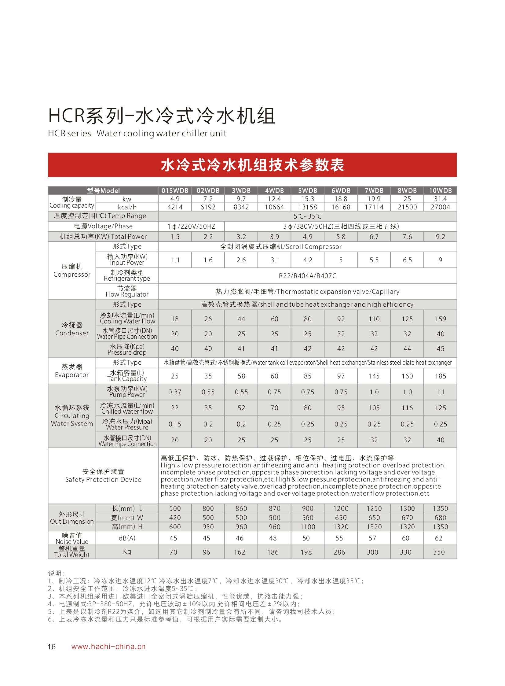 4、水冷系列需要配置冷却水塔及冷却水泵,冷水机放置在室内,噪音比较低,制冷效果更好,应用于通风散热不是很好的环境;